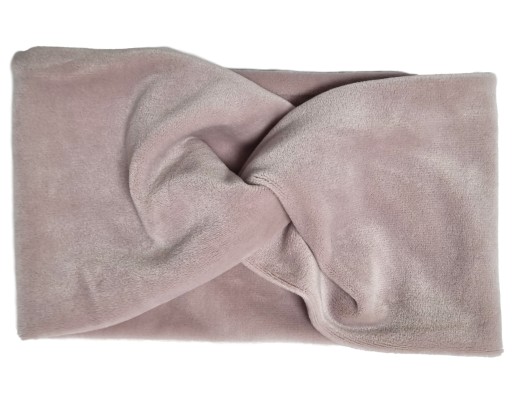 Opaska wykonana z miękkiego weluru bawełnianego. Z przodu zaplatana, z tyłu rozciągliwa gumeczka, która pozwoli dopasować ją dogłowy.