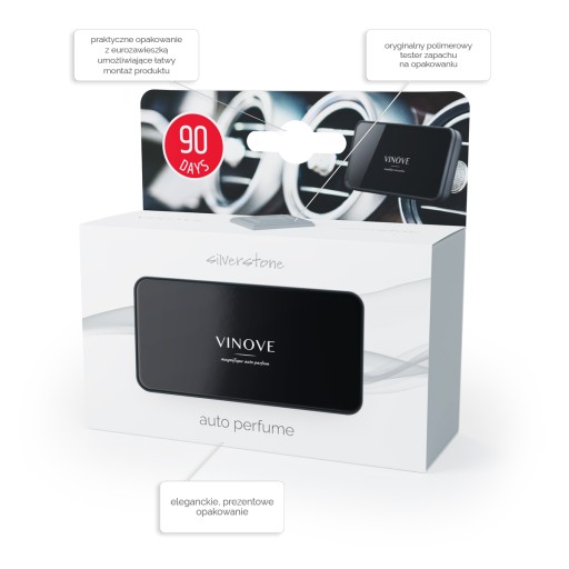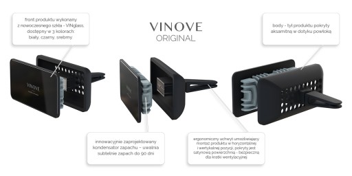 VINOVE jest nową marką perfum samochodowych, stworzonych przez polskich pasjonatów we współpracy z francuskimi mistrzami sztuki perfumeryjnej i włoskimi projektantami oraz naukowcami. VINOVE to ekskluzywne perfumy samochodowe. Do produkcji perfum samochodowych VINOVE zastosowano technologię XXI wieku. Wykorzystano wiedzę, otwartość i doświadczenie zespołu naukowców i wspólnie z nimi skondensowano zapachy w nowatorskim polimerze. Ich kształt jest tak skonstruowany, by powietrze z wywietrzników samochodowych delikatnie opływało polimerowy labirynt, uwalniając zapach subtelnie i długotrwale – aż do 90 dni. Projektując nośnik zapachu wzięto pod uwagę przede wszystkim jego walory użytkowe: długotrwałość uwalniania zapachu, bezpieczeństwo dla tapicerki i kokpitu samochodu, a także ekskluzywny wygląd, współgrający ze stylistyką nowoczesnych aut.