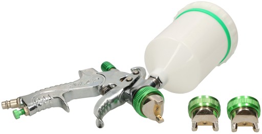 - Pistolet wyposażony jest w górny, grawitacyjny zbiornik o pojemności 600 ml.