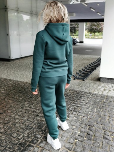 - Klasyczny z lekko dopasowaną bluzą bluzą kangurką z kieszenią z przodu oraz z mięsistym kapturem plus spodnie z kieszeniami