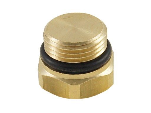 Element wykonany z mosiądzu odpornego, stosowany jako zaślepka dodatkowego, tylnego wyjścia z listwy wtryskowej gazu.