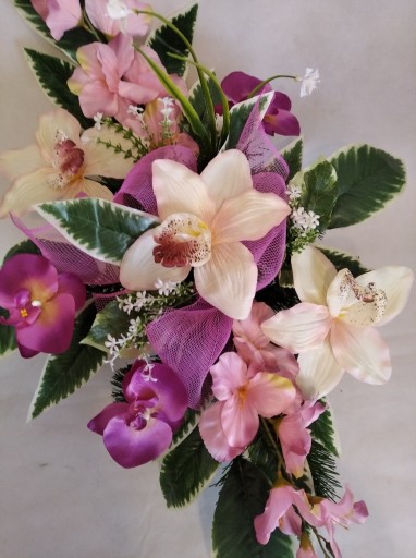 Цветы на могилу БУКЕТ ДЛЯ ВАЗЫ искусственная ОРХИДЕЯ