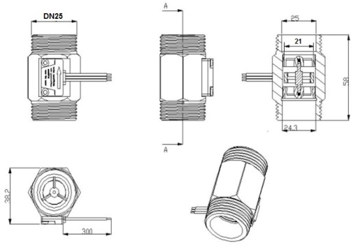 РАСХОДОМЕР ДАТЧИК РАСХОДА ЖИДКОСТИ 1"