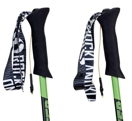 Rękojeść, wykonana z pianki poliuretanowej, posiada pętle nadgarstkowe i odpowiednio wyprofilowany, anatomiczny uchwyt. Zaletą takiego tworzywa jest również pochłanianie potu z wnętrza dłoni, oraz lekko chropowata – porowata faktura zapewniająca pewny chwyt - przeciwdziała ślizganiu się kijka nawet w spoconej dłoni. Gumowa główka oprócz funkcji podparcia dłoni, mieści mechanizm blokady pętli nadgarstkowych. Pętle nadgarstkowe wykonano z profilowanej taśmy. Taśmy obszyto dodatkowo miękkimi nićmi.