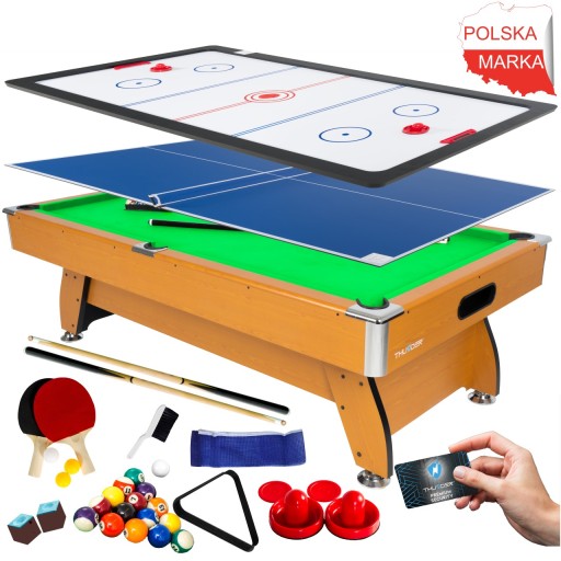Wielofunkcyjny stół bilardowy BOLD-BEIGE-8FT-HOCEKY-PING marki ⚡THUNDER®️⚡ z nakładką do cymbergaja i tenisa stołowego – pozytywne emocje z elementami zdrowej rywalizacji❗