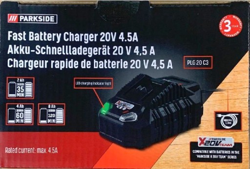 PARKSIDE® Szybka ładowarka do akumulatorów 20 V, PLG 20 C3, 4,5 A