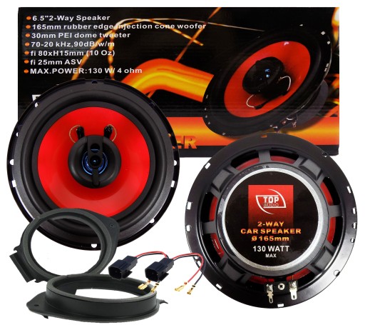 NOWE DWUDROŻNE GŁOŚNIKI FIRMY TOP AUDIO W KOMPLECIE Z DYSTANSAMI I REDUKCJAMI DO PODŁĄCZENIA Z FABRYCZNĄ INSTALACJĄ SAMOCHODU
