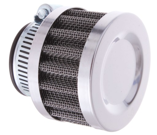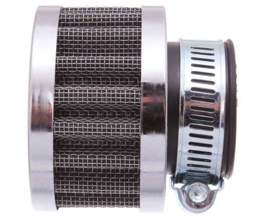 OPIS: TUNINGOWY FILTR POWIETRZA, WALEC, CHROMOWANY, METALOWY Z SIATKĄ, ROZMIAR S. CAŁOŚĆ POSIADA SPECJALNĄ OBEJMĘ MOCUJĄCĄ. MOŻNA GO CZYŚCIĆ W BENZYNIE ORAZ STOSOWAĆ SPECJALNE PIANKI I OLEJE DO FILTRÓW. GUMA FILTRA ZDEJMOWANA.