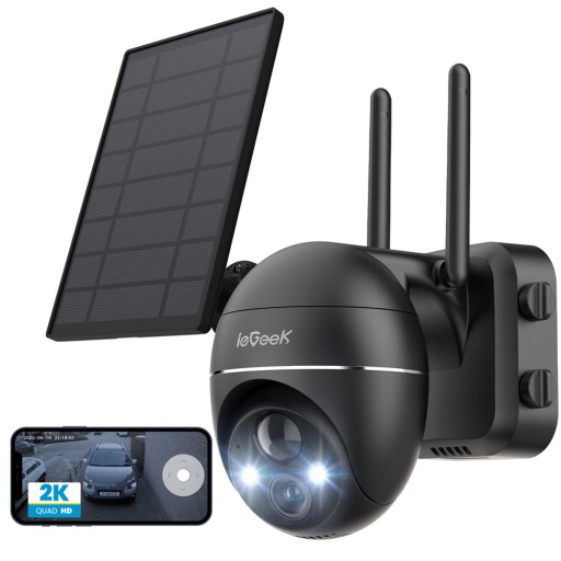 Zewnętrzna kamera monitorująca ieGeek z panelem słonecznym i wewnętrznym akumulatorem dostarczanym 9000 mAh, co pozwala zaoszczędzić na wymianie baterii, kamera do monitoringu słonecznego działa przez bardzo 365 dni. Kamera wykorzystuje podwójną antenę 4Dbi, dzięki czemu bardzo dobrze odbiera sygnał WiFi, obsługuje WiFi 2,4 GHz. W 100% bezprzewodowa kamera unika kabli, łatwa instalacja.