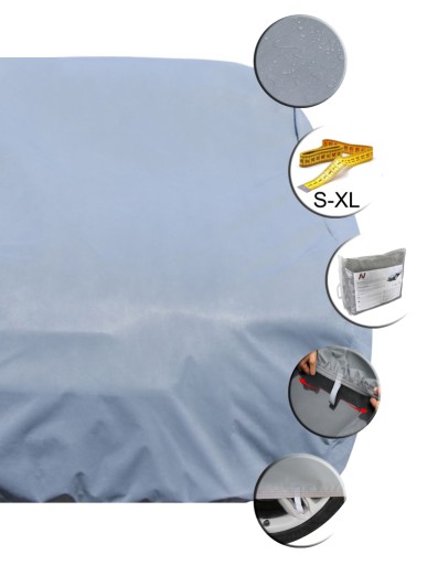 Pokrowiec wykończony został mocną gumą ściągającą, która trzyma plandekę po całym obwodzie auta.