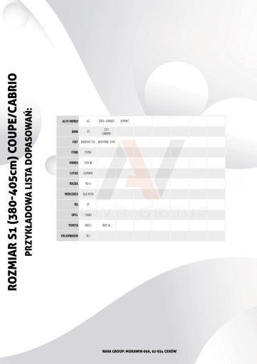Rozmiar pokrowca: S1 coupe/cabrio
