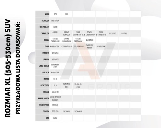 - Szeroka gama rozmiarów która uwzględnia różne rodzaje nadwozia oraz długości auta