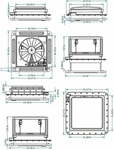 Wentylator dachowy do przyczepy kempingowej i wentylator wyciągowy z oświetleniem LED 28 x 28 cm
