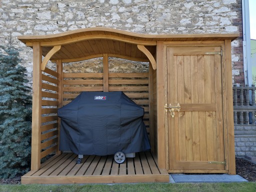 ➔ wykonanie z naturalnego drewna sosnowego – to wytrzymały, żywotny i ekologiczny materiał, który pozwala na stałe użytkowanie zabudowy na zewnątrz