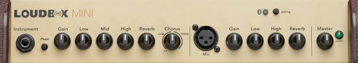 - pokrętła: Master Volume, Gain, Low, High, Reverb (dla obydwu kanałów), Mid, Chorus (dla kanału instrumentalnego)