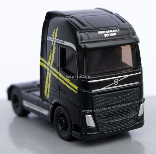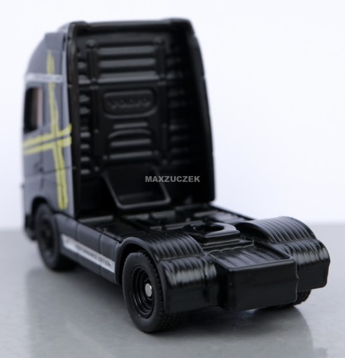 Volvo FH16 swoim charakterystycznym czarnym lakierem demonstruje swoją moc. Firma siku dostarcza ten 2-osiowy ciągnik na gumowanych oponach z felgami typowymi dla ciężarówek. Za pomocą zaczepu może ciągnąć wszystkie naczepy siku w skali 1:87.