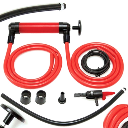 Wielofunkcyjna pompka 3w1 do spuszczania paliwa, oleju, wody i innych płynów! Doskonale nadaje się do samochodów, ciągników, łodzi i wszędzie tam gdzie szybko trzeba przepompować płyn z jednego zbiornika do drugiego. Umożliwia również szybkie i bezpieczne spuszczanie powietrza z dmuchanych zabawek, materacy i basenów!