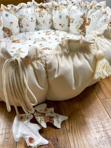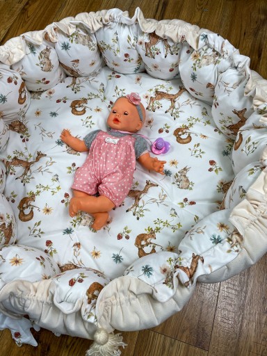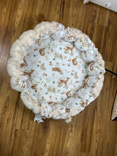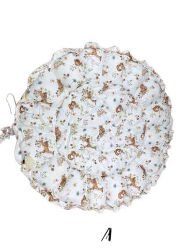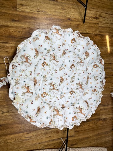 Po rozwiązaniu sznureczka kojec zamienia się w matę o średnicy 155cm.