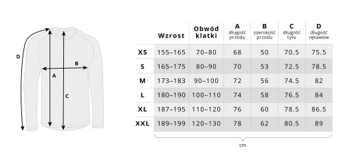 Przedłużony tył bluzy zakrywa plecy nawet przy głęboko pochylonej pozycji podczas jazdy.