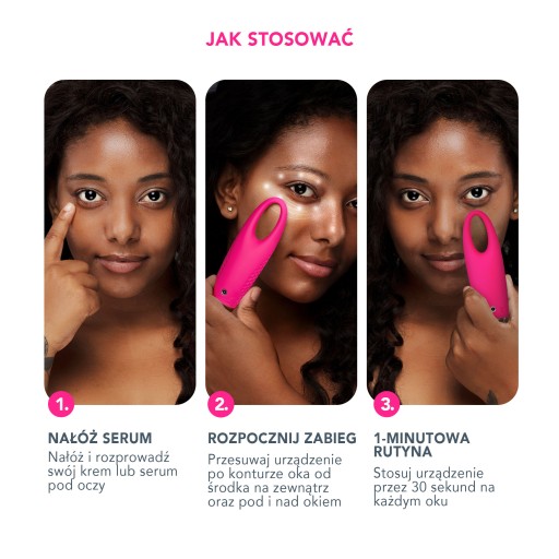 Nowa wersja masażera do oczu wykorzystuje jeszcze mocniejszy mechanizm oparty na akupresurze, który maksymalizuje drenaż limfatyczny, rozluźnia napięte mięśnie, redukuje cienie pod oczami oraz niweluje opuchliznę i zmęczony wygląd.