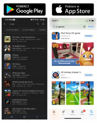 Aby zagrać w gry przeznaczone do okularów VR, wystarczy wpisać frazę "VR" w odpowiednim sklepie (Play lub App Store), a otrzymasz pełną listę gier dostosowanych do tego rodzaju doświadczenia.