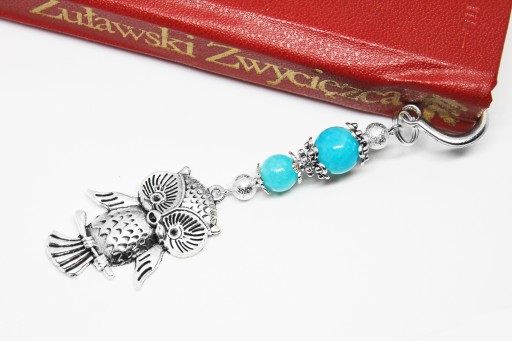 Elegancka zakładka do książki z zawieszką w kształcie sowy z dodatkiem niebieskich jadeitów.