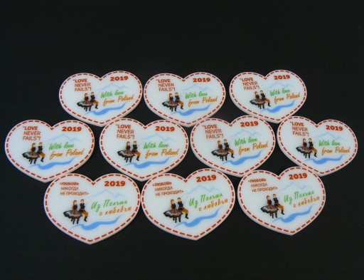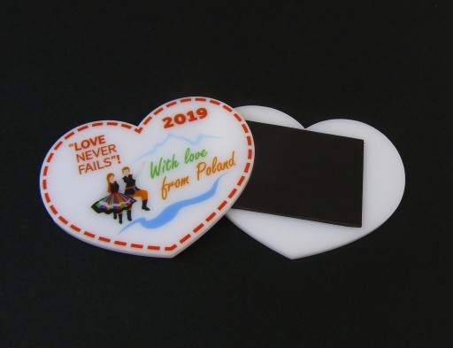 Magnesy wykonane są z plexi mlecznej o grubości 3 mm, są starannie wycięte techniką laserową, na odwrocie przyklejona jest warstwa magnetyczna.