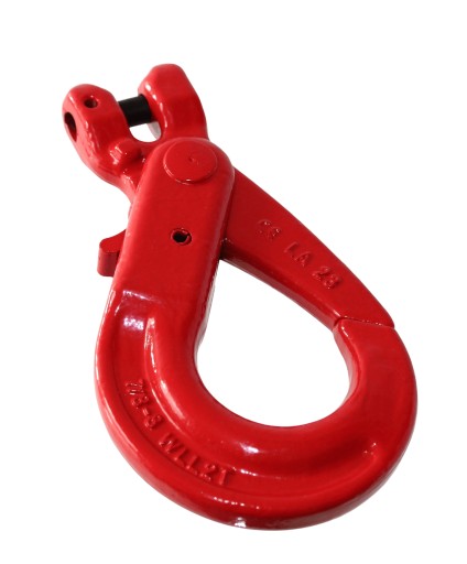 Hak bezpieczny sworzniowy EN 1677-3 klasy 8 malowany proszkowo w kolorze czerwonym przeznaczony do zawiesi łańcuchowych