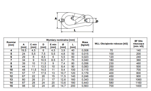 Zastosowanie:Karabińczyki stalowe, służące jako elementy łączące w zakończeniach lin, łańcuchów używane w sportach wspinaczkowych, żeglarstwie, oraz do zabezpieczeń.