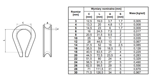 Ochrona liny przed przecieraniem i zgniataniem.Kauszę można stosować do lin metalowych i sztucznych