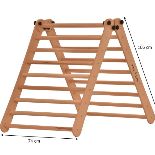Wykonana z naturalnego drewna. Solidna i niezawodna konstrukcja oraz łatwy montaż. Wielofunkcyjny trójkąt wspinaczkowy – idealna domowy plac zabaw dla dzieci.