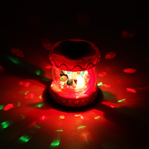Na karuzeli po włączeniu, pokazują się kolorowe światełka, które będą wyglądały niezwykle efektownie zwłaszcza wieczorem, gdy w pokoju dziecka panuje półmrok. Dzięki temu maluch już nie będzie bał się samodzielnego zasypiania.
