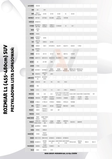 - Szeroka gama rozmiarów która uwzględnia różne rodzaje nadwozia oraz długości auta