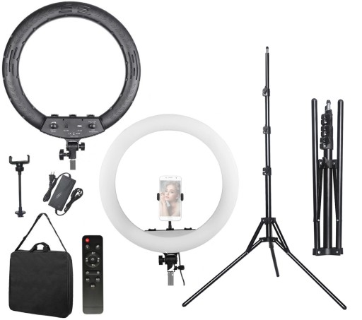 ✅ Duża i wydajna lampa pierścieniowa LED o średnicy 45 cm z płynną regulacją mocy i temperatury barwowej w bardzo szerokim zakresie - od ciepłego światła 2700 K do zimnego 6500 K. Port USB w obudowie pozwala na ładowanie telefonu w trakcie długiej pracy. W komplecie uchwyt do smartfona na giętkim ramieniu oraz pilot do zdalnego sterowania światłem.