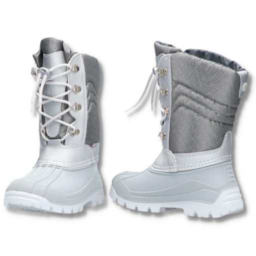 Dziecięce śniegowce, ocieplone zapinaną wkładką polarową, Podeszwa wykonana z materiału TR. Sznurowana cholewka pozwala dopasować ją do łydki. Doskonałe do zabawy na śniegu czy też do szkoły.