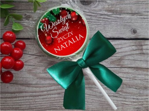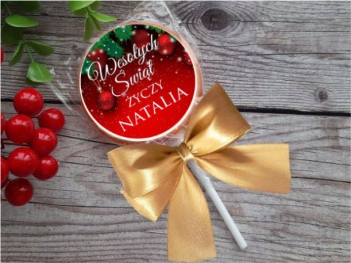 Lizak + naklejka + kokardka, wszystkie te produkty są pakowane w osobnych grupach, do samodzielnego złożenia (zmniejsza to ryzyko uszkodzenia w transporcie). Po otrzymaniu produktów należy samodzielnie nakleić gotową naklejkę oraz przymocować kokardkę. Kokardki są złożone i gotowe do aplikacji za pomocą przeźroczystej gumki.