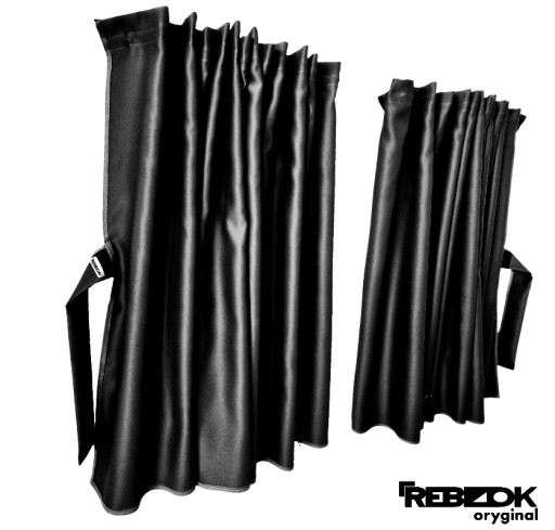 Zasłony - dwie części lewa/prawa strona. Zasłaniają całą kabinę przed promieniami słonecznymi 2x 180/85cm, łączenie na środku za pomocą zamka dwu-suwakowego