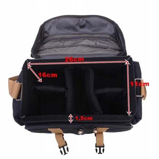 Wymiary zewnętrzne torby: 32cm / 16cm / 22cm (dł./szer./wys.)
