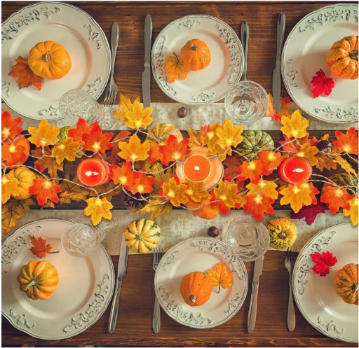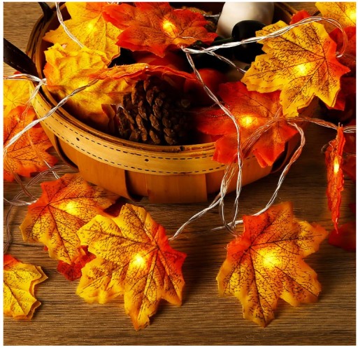 GIRLANDA JESIENNA SZTUCZNE LIŚCIE OZDOBA LED LAMPA