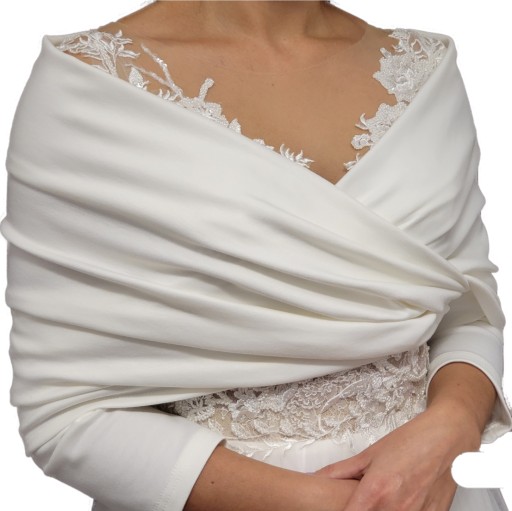 Najmodniejsza w tym sezonie, elegancka i przyjemna w dotyku narzutka jest świetnym dodatkiem dla Panny Młodej w dniu ślubu.