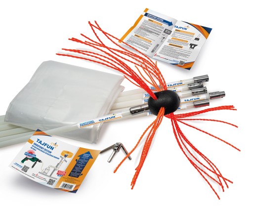 Zestaw Tajfun został przystosowany do czyszczenia komina od dołu, od strony urządzenia grzewczego. Nie potrzeba wchodzić na dach, dzięki temu z łatwością wyczyścić komin o dowolnej długości.