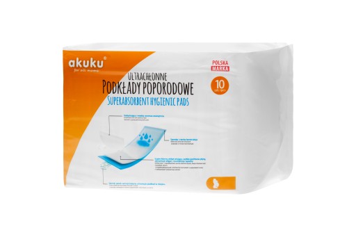 Superchłonne podkłady poporodowe, podpaski 10szt. marki Akuku!