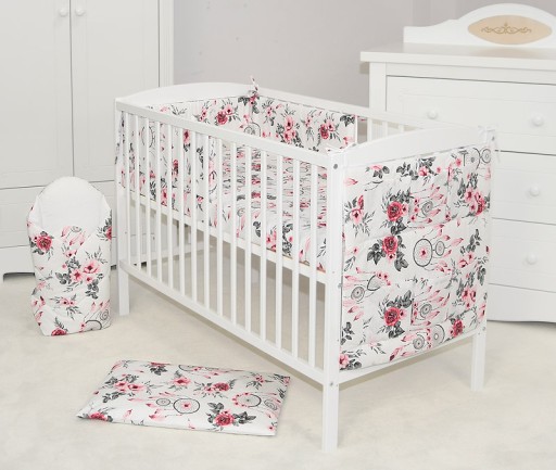 Łóżeczko białe " OLA " + materac + komplet pościeli