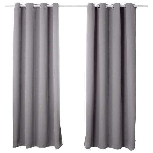 - Konstrukcja tej zasłony zaciemniającej jest prosta i nowoczesna. W górnej części każdej zasłony znajduje się 8 metalowych przelotek w kolorze srebrnym (średnica wewnętrzna 4 cm, średnica zewnętrzna 6 cm). Aby zamocować zasłonę, prosimy naciągnąć przelotki na karnisz.