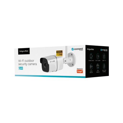 Lubisz rozwiązania smart? Zewnętrzna kamera bezprzewodowa Wi-Fi Connect C40 jest właśnie dla Ciebie. Dzięki łączności Wi-Fi urządzenie może być sterowane aplikacją TuyaSmart, dlatego, niezależnie gdzie jesteś, możesz w każdym momencie sprawdzić, co dzieje się na Twoim podwórku.