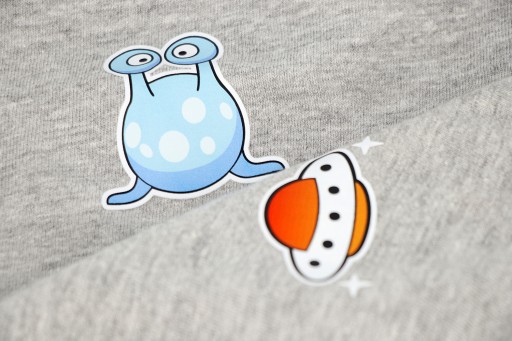 Naklejki Emoji to produkt wykonany w technologii DTF. Naklejki składają się z dwóch cienkich warstw, są cieńsze od naklejek typu Folia Flex jednak równie trwałe i rozciągliwe. To co wyróżnia te naklejki to wielokolorowość oraz kształty i wzory niemożliwe do uzyskania w technologi Flex, np. spiralne napisy, drobne wąskie paseczki itp. Z kolei naklejki te nie posiadają zdobień typu brokat czy odbicie, ale też ich cena jest odpowiednio niższa niż w przypadku naprasowanek Flex.