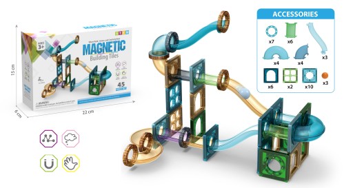 Zestaw klocków magnetycznych z torem kulkowym - 45 elementów!