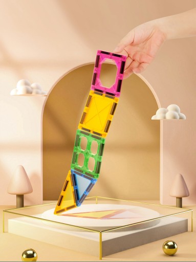 Klocki charakteryzują się łatwością łączenia poszczególnych elementów w dowolny sposób oraz pod różnymi kątami. Na bokach każdego klocka są wbudowane mocne magnesy neodymowe, którą z dużą siłą łączą ze sobą kolejne elementy tworząc przeróżne figury. Klocki można układać płasko tworząc tory, wężyki itp. oraz przestrzennie budując przeróżne figury trójwymiarowe. W ten sposób dzieci będą mogły pobudzać swoją wyobraźnię przestrzenną.