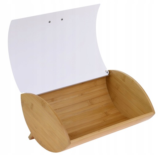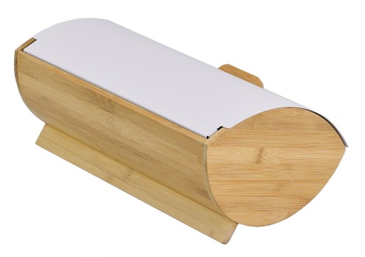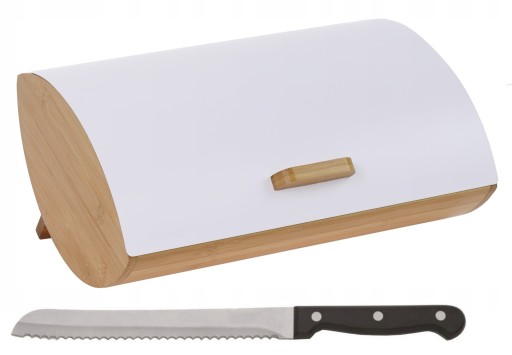 Podstawa chlebaka wykonana z drewna bambusowego, natomiast pokrywa STALOWA w kolorze białym matowym.