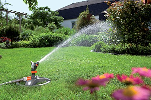 GARDENA Premium zraszacz bijakowy (nr art.8135) do średnich i dużych powierzchni z zastosowaniem sektorowym. Konstrukcja obudowy zraszacza jest wykonana z wysokojakościowych materiałów tworzywa sztucznego i metalu, dzięki temu otrzymujemy bardzo stabilną i wytrzymałą konstrukcję. Możliwość ustawienia sektora od 25° do 360° za pomocą specjalnych pierścieni. Mosiężna dysza umieszczona w zraszaczu daje gwarancję równomiernego rozprowadzenia wody. Pokrętło umieszczone na urządzeniu pozwala na ustawienie zasięgu. Zasięg od 5 metrów do 12,5 mera. Powierzchnia, którą obejmuje urządzenie to od 75 do 490 m². Urządzenie gotowe do pracy. Podłączenie poprzez przyłącze kranowe które jest wbudowane. Można również modułowo połączyć kilka zraszaczy dlatego też zraszacz bijakowy jest zakończony korkiem. Gwint przyłączeniowy głowicy ma średnicę 21mm (G1/2). Okrągła podstawa daje stabilność i łatwość w przenoszeniu urządzenia. Parametry urządzenia w tabeli poniżej.